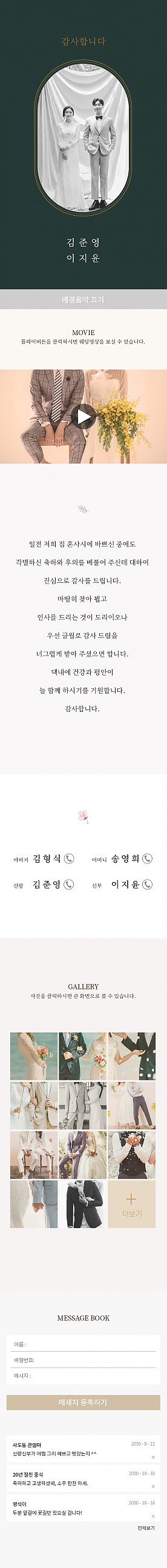 개인bgm, 개인감사영상, 웨딩갤러리등을 사용할 수 있는 디자인의 감사장입니다. 예식일에 촬영하신 영상을 등록하시면 감사와 존경, 감동을 생생하게 전하실 수 있습니다. (제작일 이후 2달간 사용 가능하며, 이후에는 자동 삭제됩니다.)